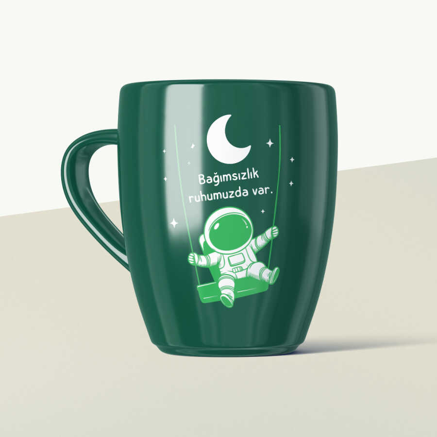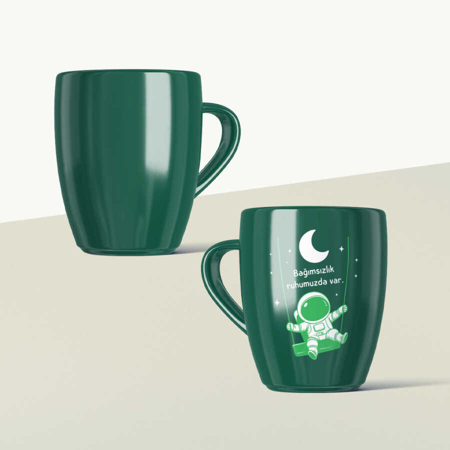 Bağımsızlık Ruhumuzda Var Mottolu Yeşil Seramik Kupa – 300 cc