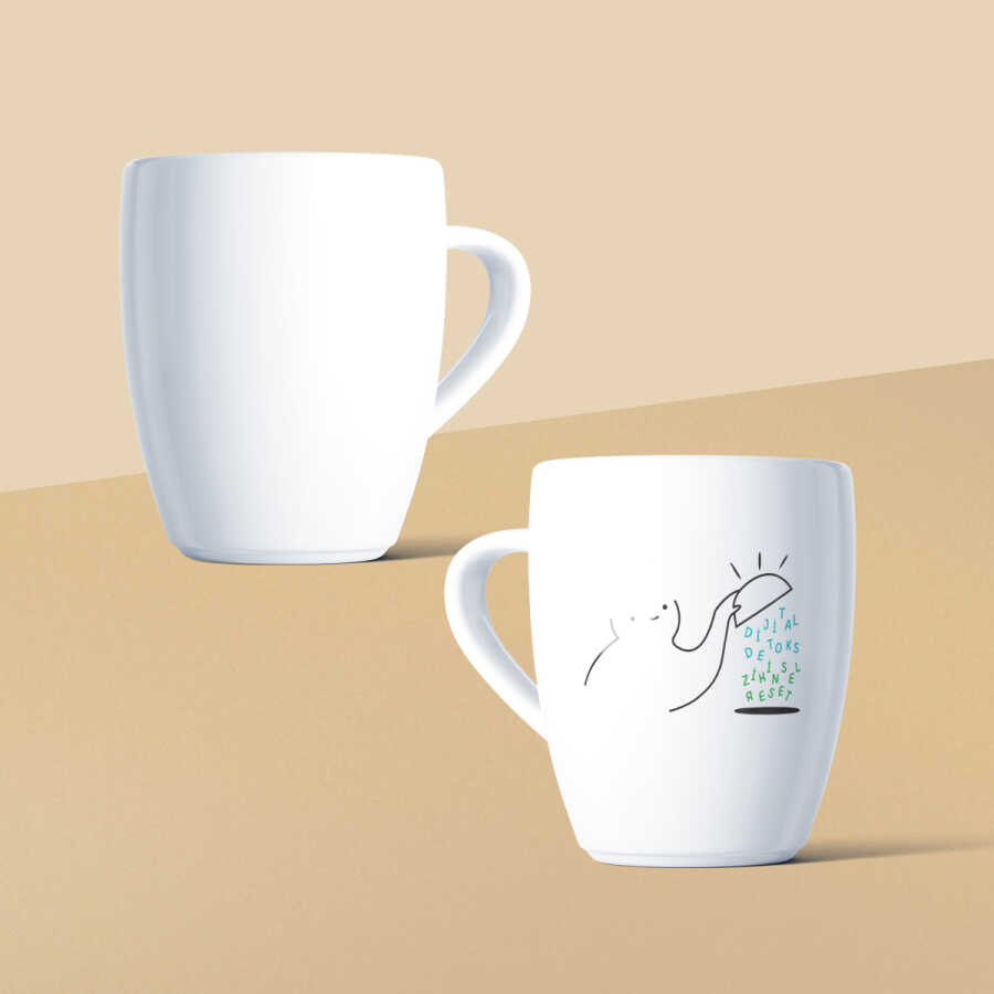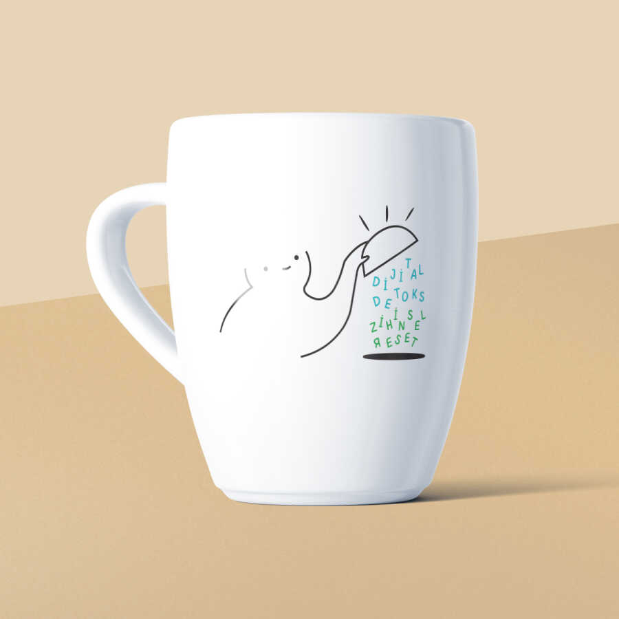 Dijital Detoks Zihinsel Reset Mottolu Beyaz Seramik Kupa – 300 cc