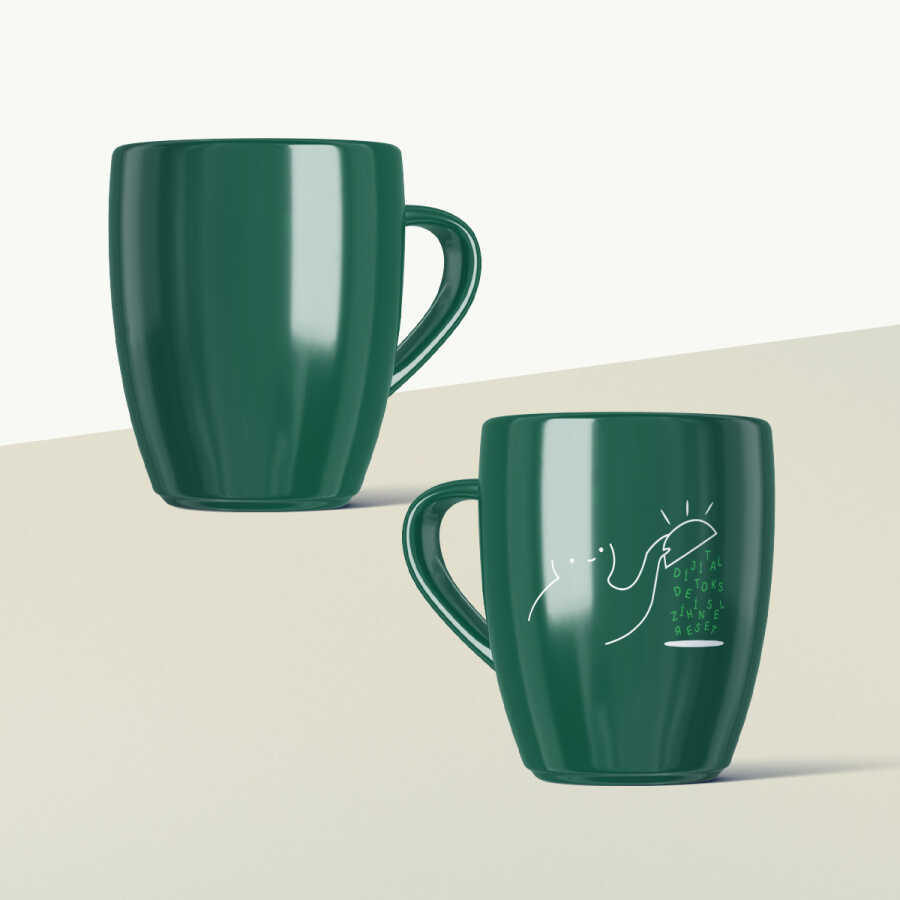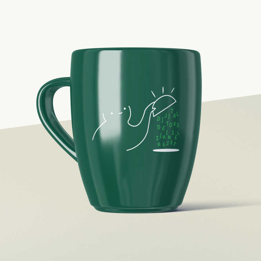Dijital Detoks Zihinsel Reset Mottolu Yeşil Seramik Kupa – 300 cc