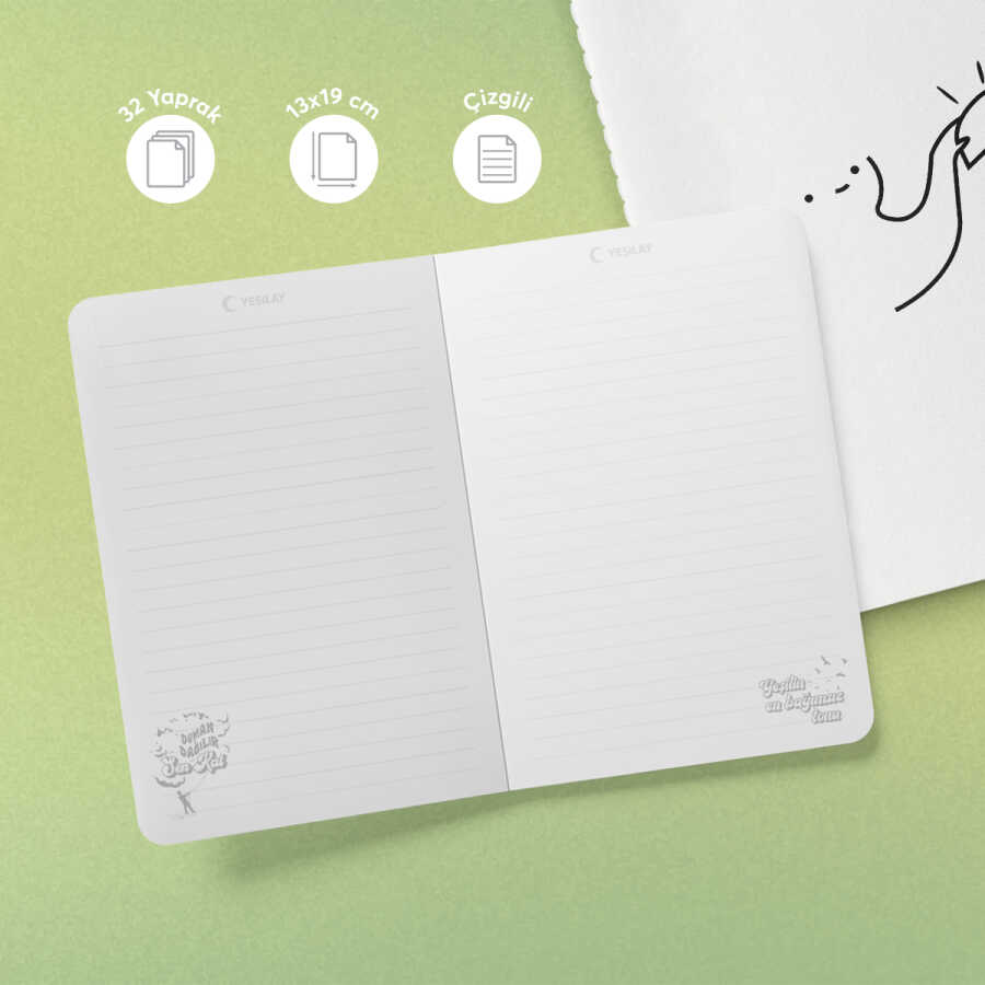13x19 cm boyutuyla günlük kullanım için ideal olan bu defter, oval kesimli zarif kenarları ve sırt dikişli sağlam yapısıyla uzun ömürlüdür. Göz yormayan kaliteli sarı sayfaları, hem yazı yazmak hem de çizim yapmak için konfor sunar.