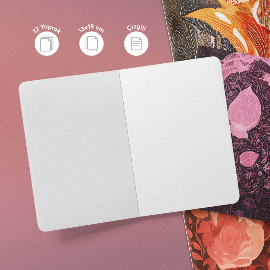 13x19 cm boyutuyla günlük kullanım için ideal olan bu defter, oval kesimli zarif kenarları ve sırt dikişli sağlam yapısıyla uzun ömürlüdür. Göz yormayan kaliteli sarı sayfaları, hem yazı yazmak hem de çizim yapmak için konfor sunar.