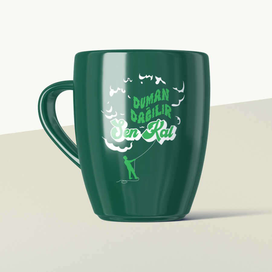 Duman Dağılır Sen Kal Mottolu Yeşil Seramik Kupa – 300 cc