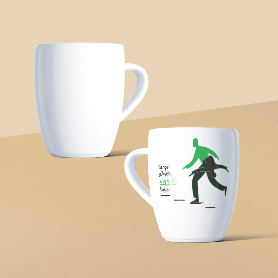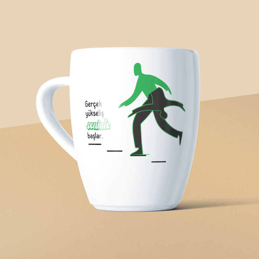 Gerçek Yükseliş Seninle Başlar Mottolu Beyaz Seramik Kupa – 300 cc
