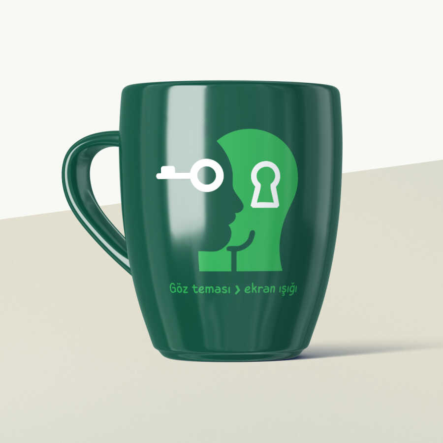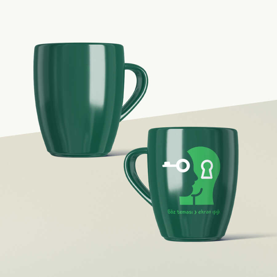 Göz Teması > Ekran Işığı Mottolu Yeşil Seramik Kupa – 300 cc