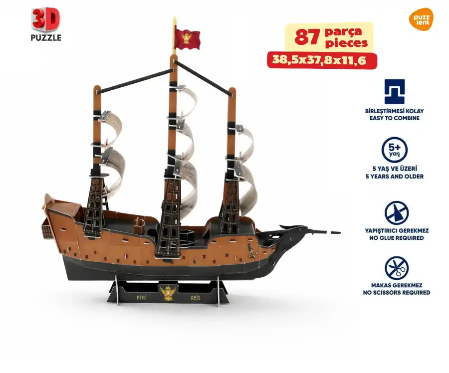 Osmanlı denizciliğinin ve dünya haritacılığının en önemli isimlerinden Piri Reis’ten ilham alınarak tasarlanan Piri Reis Gemisi 3D Puzzle, tarihi öğrenmeyi eğlenceli bir deneyime dönüştürür.